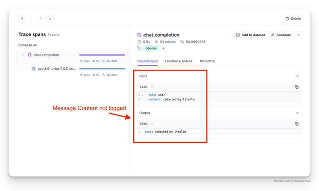 Set litellm.turn_off_message_logging=True This will prevent the messages and responses from being logged to your logging provider, but request metadata - e.g. spend, will still be tracked.
